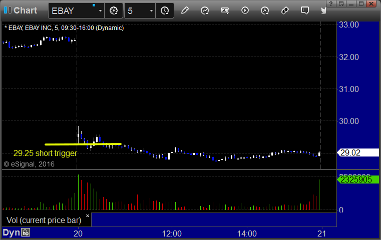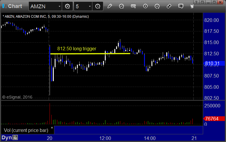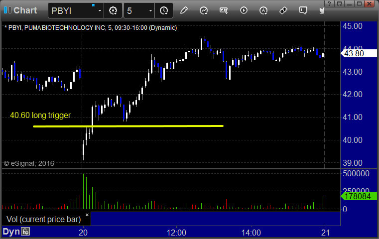 With each stock's recap, we will include a (with market support) or (without market support) tag, designating whether the trade triggered with or without market directional support at the time. Anything in the first five minutes will be considered WITHOUT market support because market direction cannot be determined that early. ETF calls do not require market support, and are thus either winners or losers.