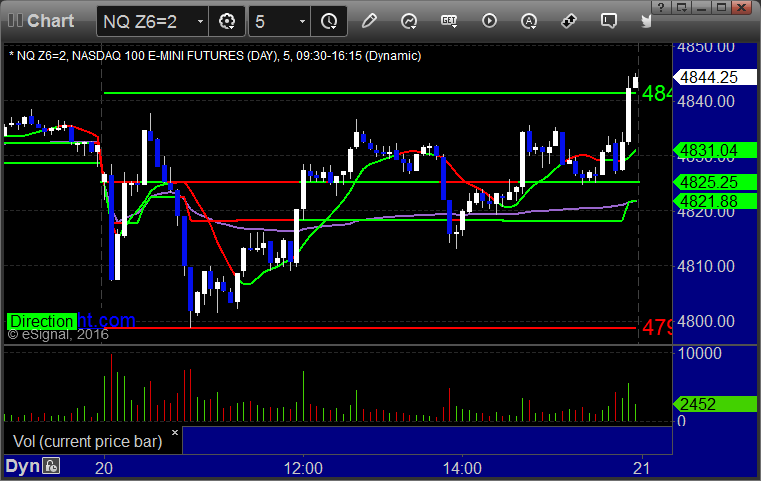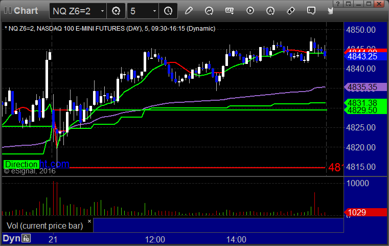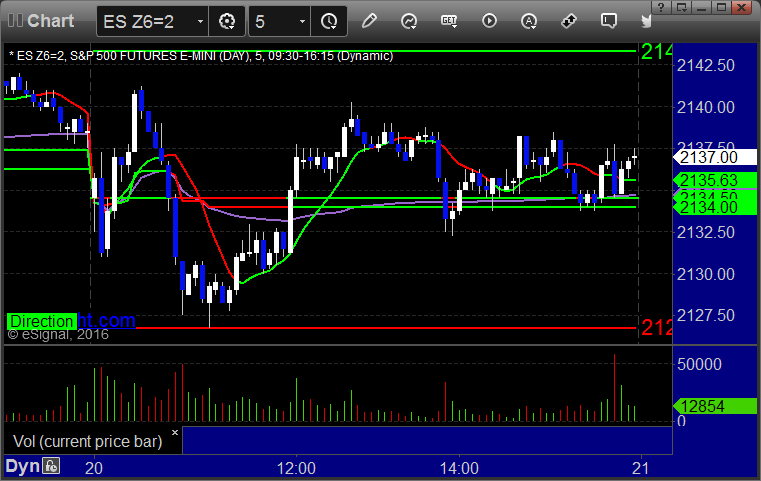 As usual, let's start by taking a look at the ES and NQ with our market directional lines, VWAP, and Comber on the 5-minute chart from today's session: