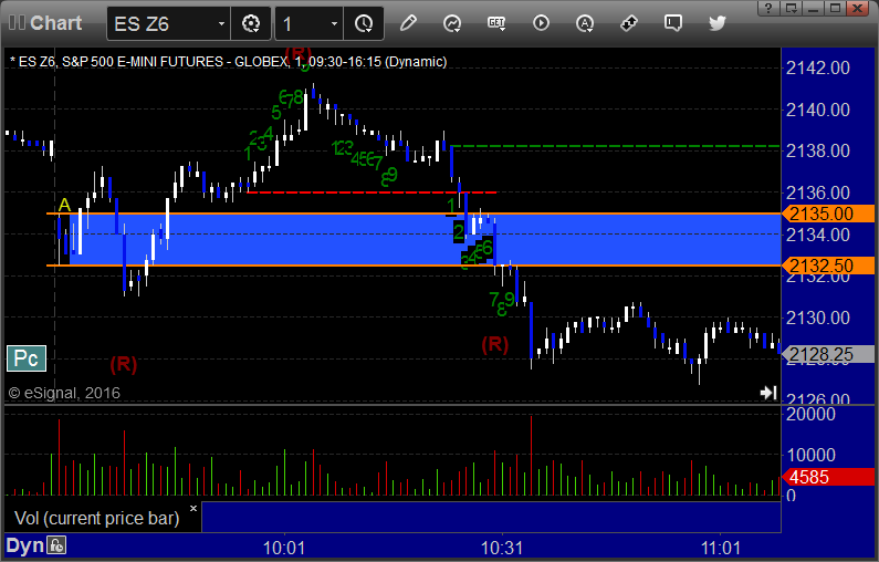 My call triggered long at A at 2138.00, hit first target for 6 ticks, stopped second half under the entry:
