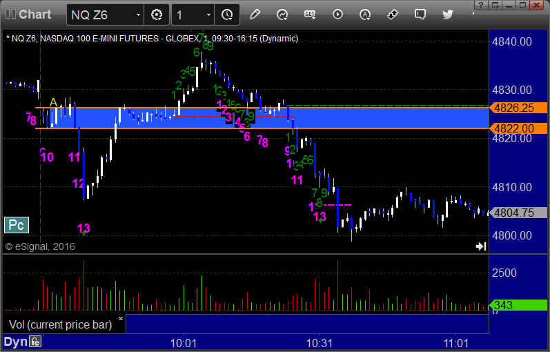 NQ Opening Range Play triggered long at A and stopped, we did not take the shorts as mentioned in the Lab: