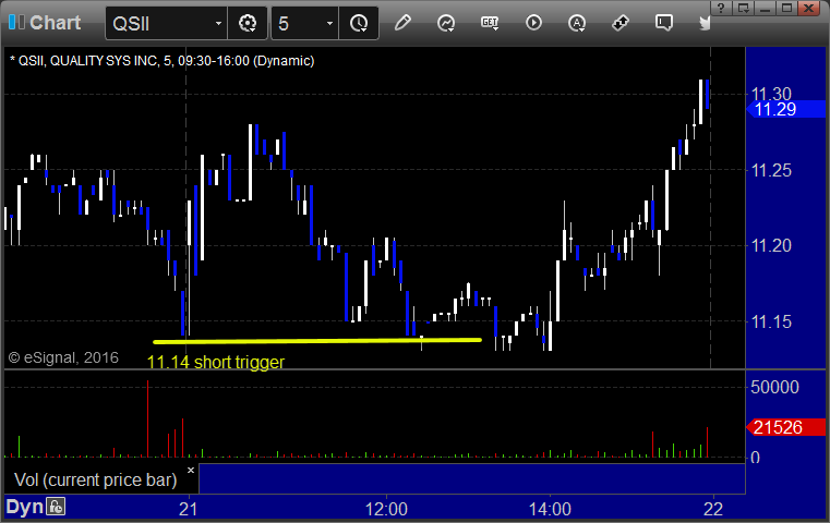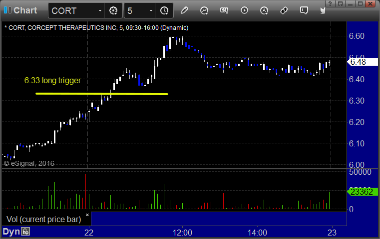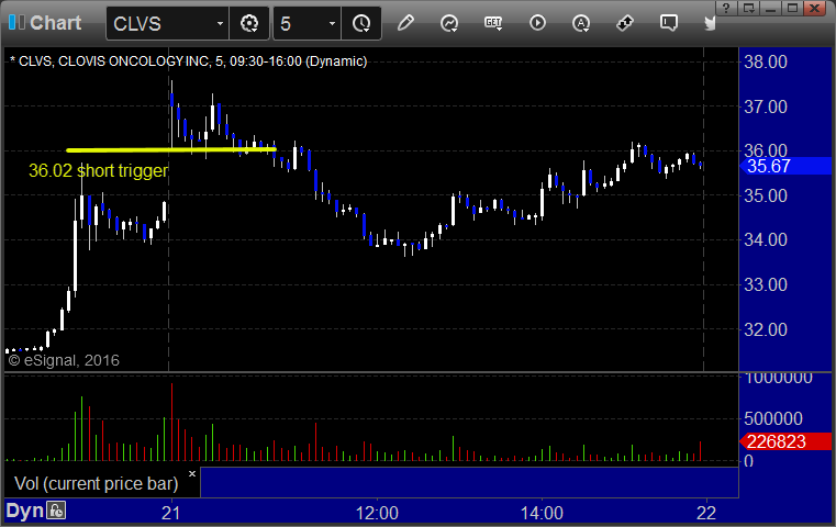 From the Messenger/Tradesight_st Twitter Feed, Rich's CLVS triggered short (with market support) and didn't work: