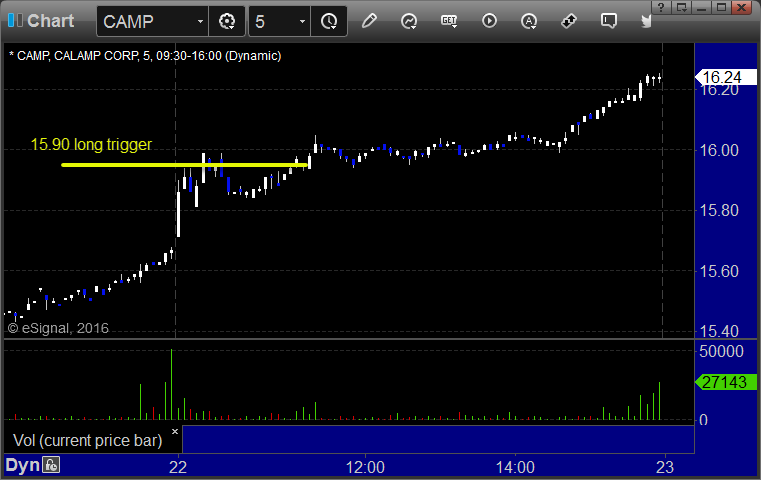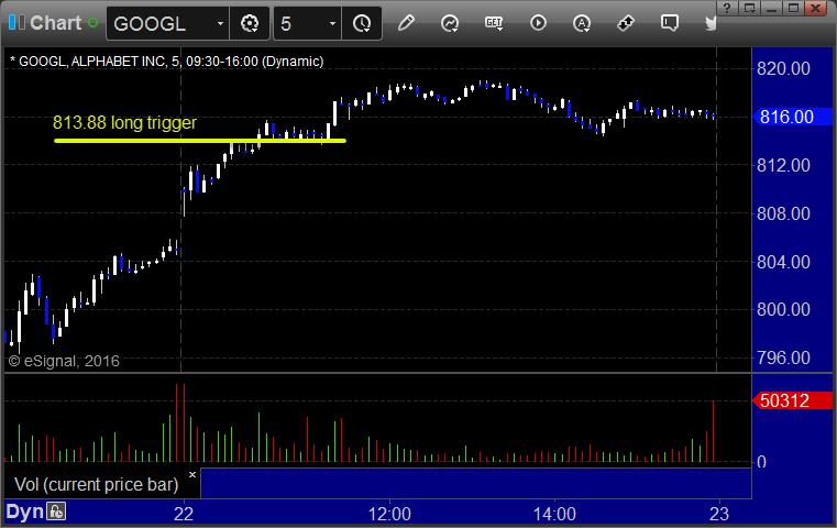 With each stock's recap, we will include a (with market support) or (without market support) tag, designating whether the trade triggered with or without market directional support at the time. Anything in the first five minutes will be considered WITHOUT market support because market direction cannot be determined that early. ETF calls do not require market support, and are thus either winners or losers.