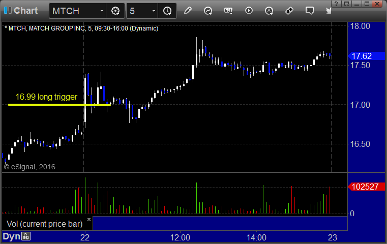 MTCH triggered long (without market support due to opening 5 minutes) and worked: