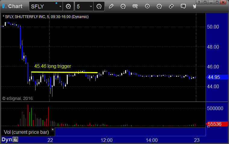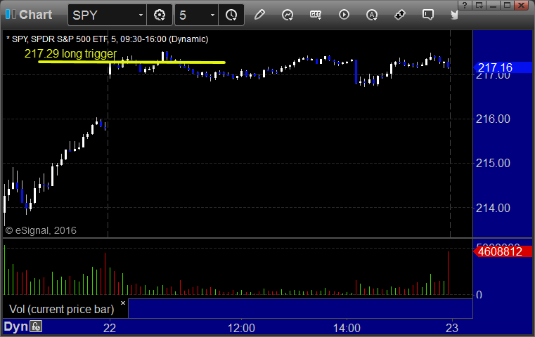 From the Messenger/Tradesight_st Twitter Feed, Rich's SPY triggered long (ETF, so no market support needed) and did nothing for hours because the market was so flat:
