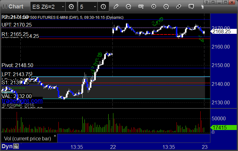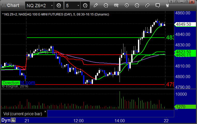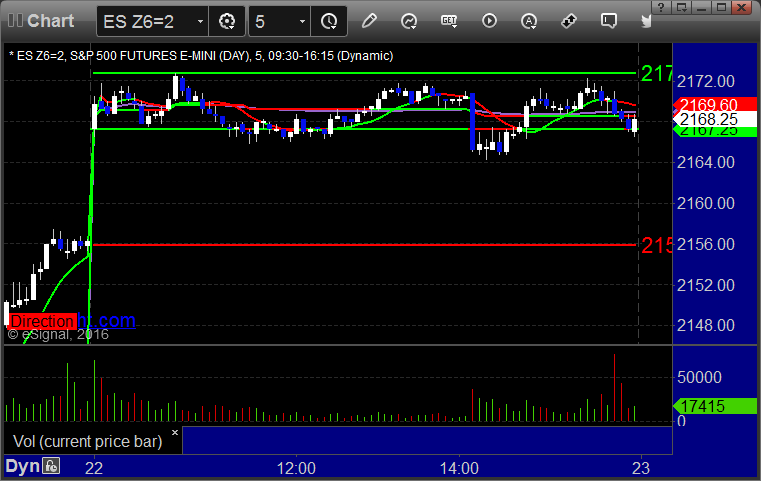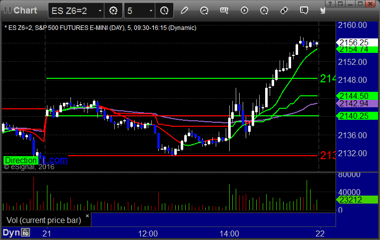 As usual, let's start by taking a look at the ES and NQ with our market directional lines, VWAP, and Comber on the 5-minute chart from today's session: