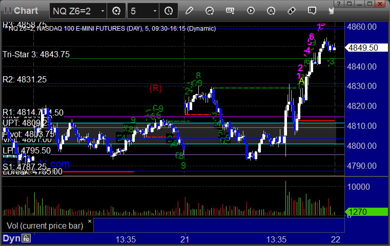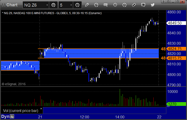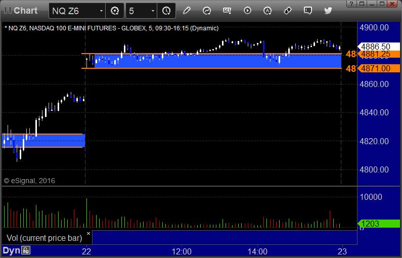 Just a reminder that we use half points for ticks on the NQ and not the quarter point measurement that the exchanges switched to in recent years. This allows us to use 6 ticks as a key target as we do on the other contracts. It also keeps the value of a tick at $10, closer to the value of a tick on the other contracts.