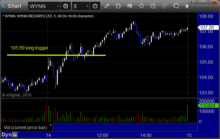 From the report, WYNN triggered long (with market support) and worked enough for a partial: