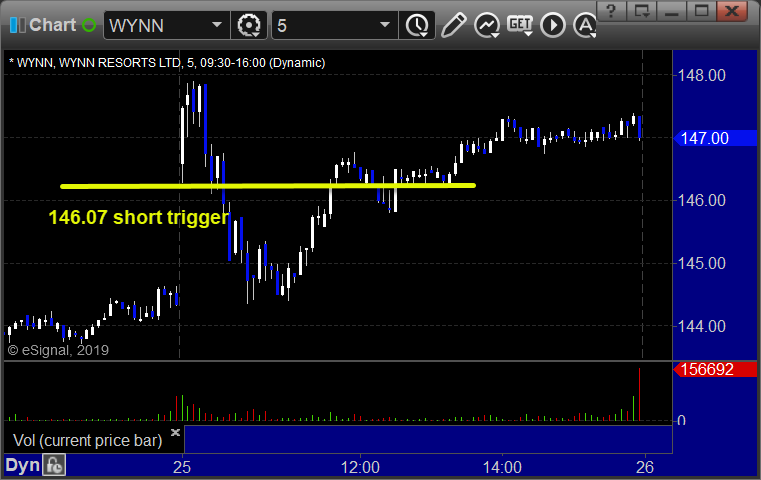 From the Messenger/Tradesight_st Twitter Feed, WYNN triggered short (with market support) and worked: