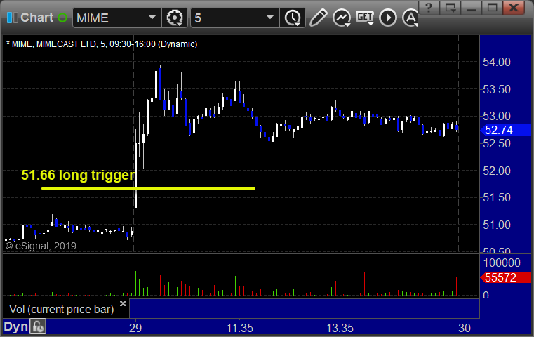 With each stock's recap, we will include a (with market support) or (without market support) tag, designating whether the trade triggered with or without market directional support at the time. Anything in the first five minutes will be considered WITHOUT market support because market direction cannot be determined that early. ETF calls do not require market support, and are thus either winners or losers.