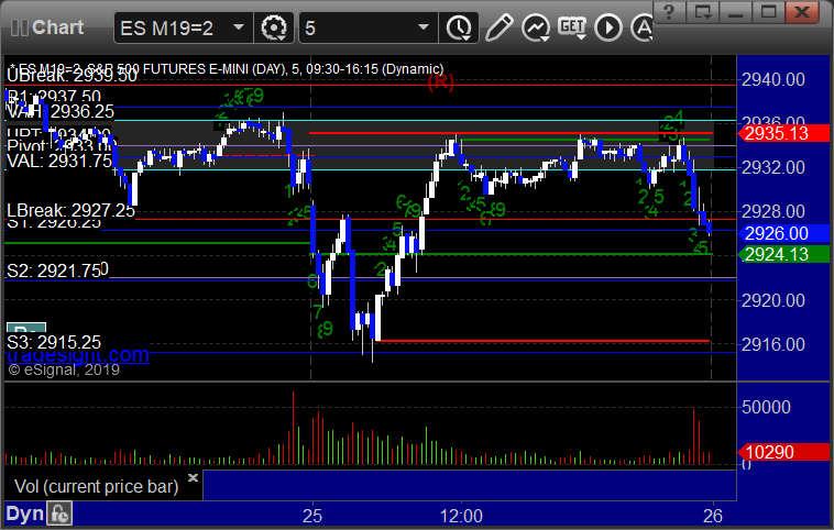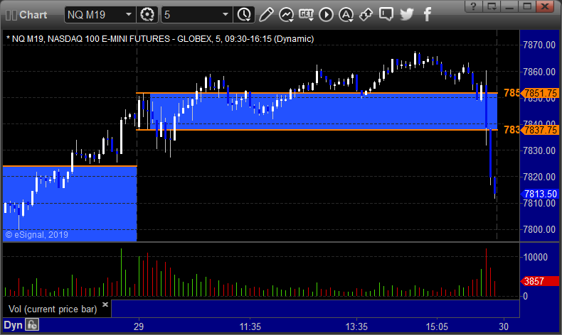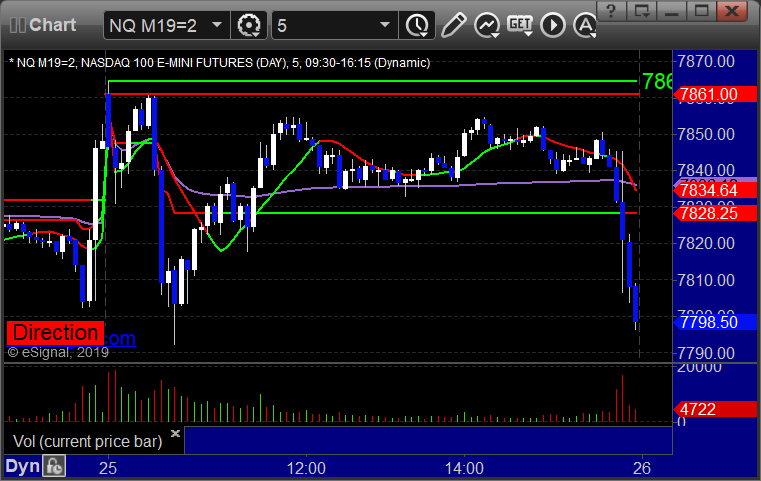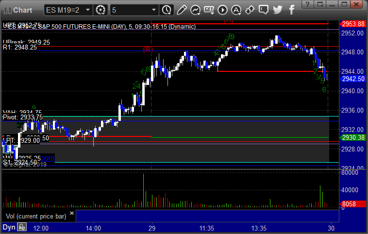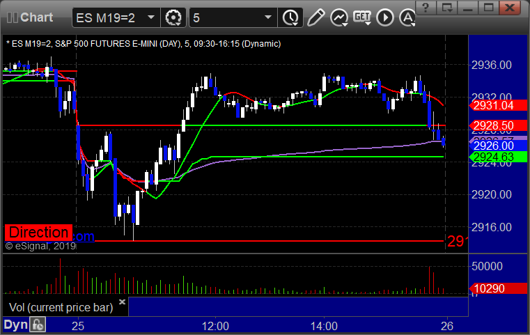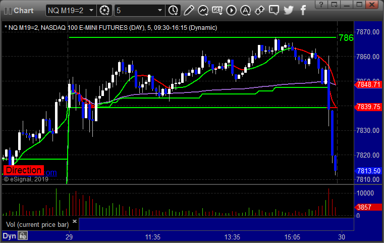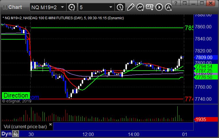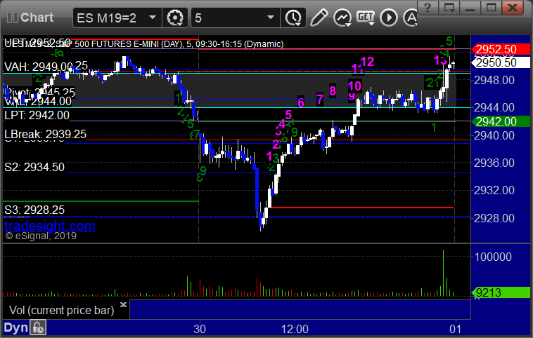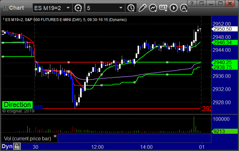 As usual, let's start by taking a look at the ES and NQ with our market directional lines, VWAP, and Comber on the 5-minute chart from today's session: