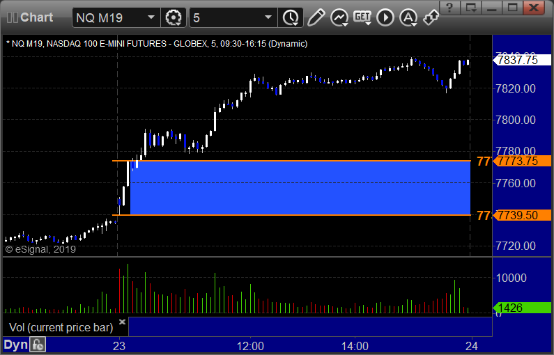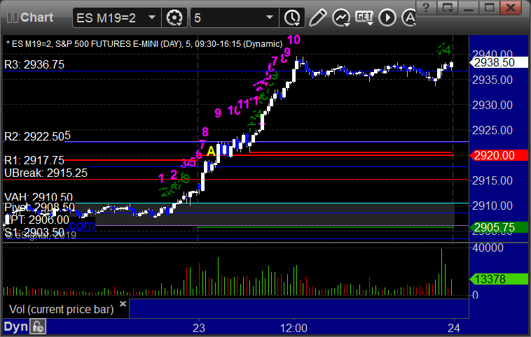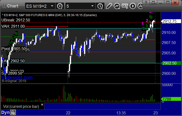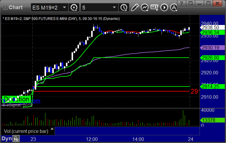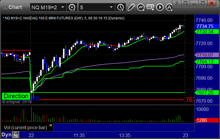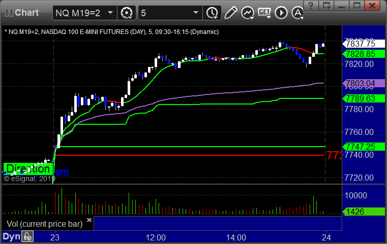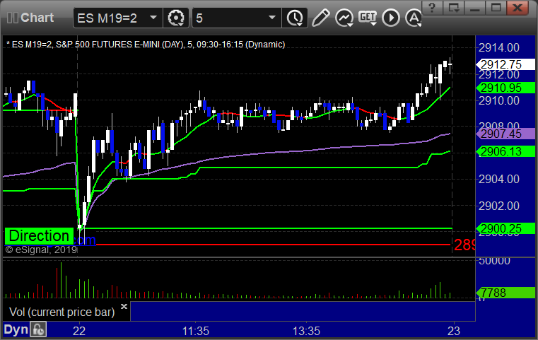 As usual, let's start by taking a look at the ES and NQ with our market directional lines, VWAP, and Comber on the 5-minute chart from today's session: