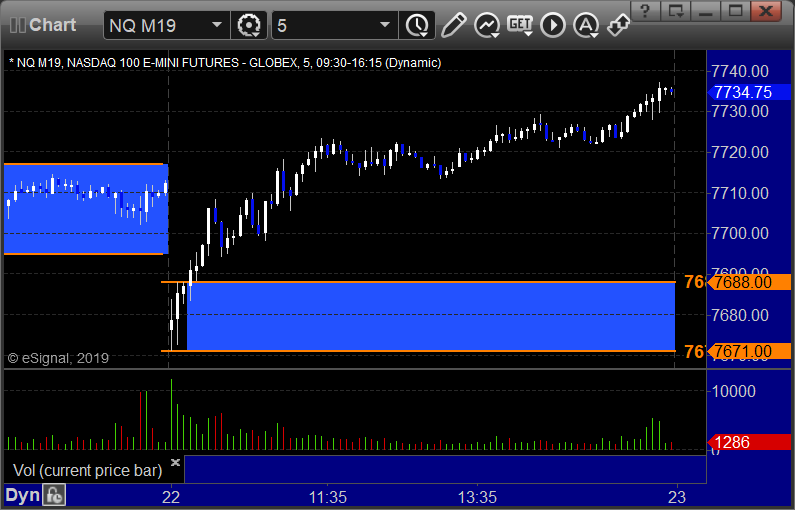 The markets gapped up small and pushed higher all morning, then went dead flat after lunch on 1.9 billion NASDAQ shares. Good day for us.