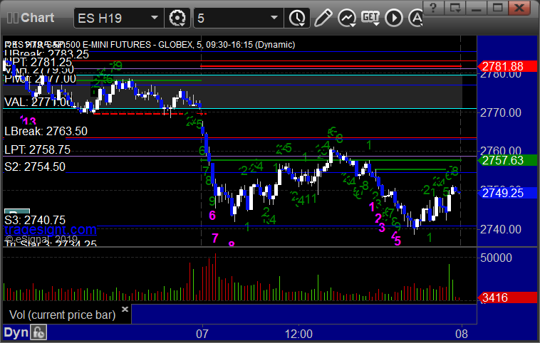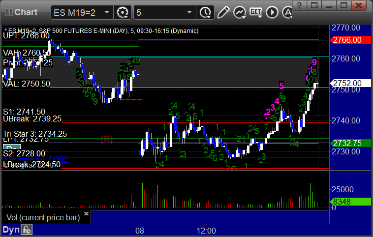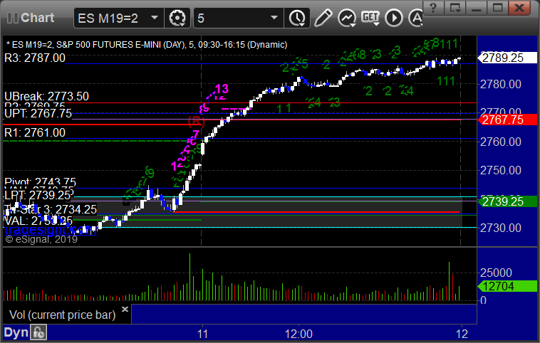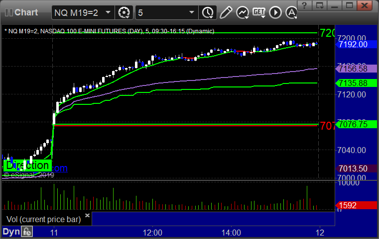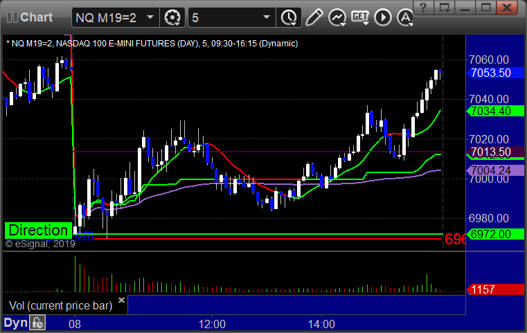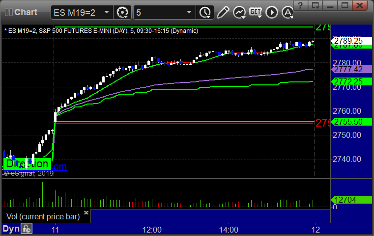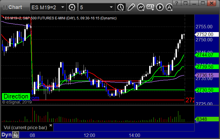 As usual, let's start by taking a look at the ES and NQ with our market directional lines, VWAP, and Comber on the 5-minute chart from today's session: