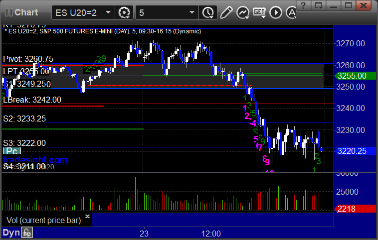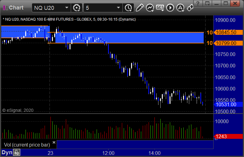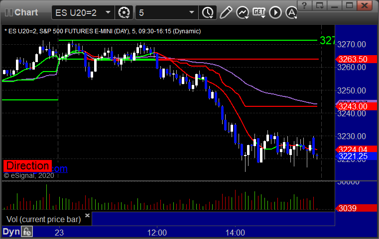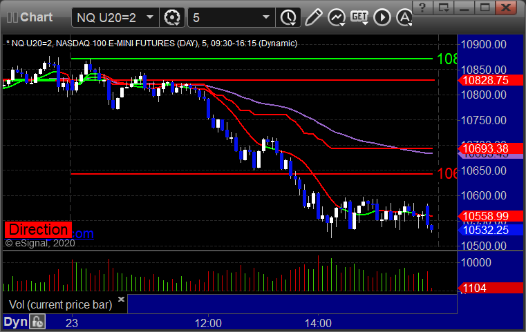 As usual, let's start by taking a look at the ES and NQ with our market directional lines, VWAP, and Comber on the 5-minute chart from today's session: