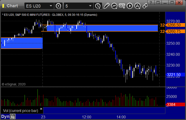 ES Opening Range Play triggered long at A and worked, triggered short at B and worked: