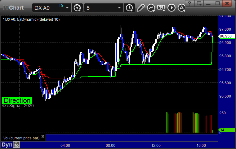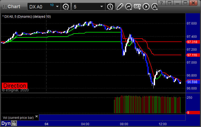 Here's a look at the US Dollar Index intraday with our market directional lines:
