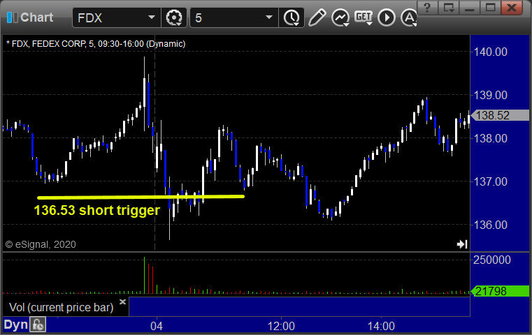 From the Messenger/Tradesight_st Twitter Feed, Rich's FDX triggered short (without market support) and worked enough for a partial: