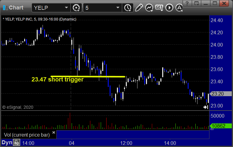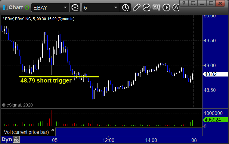 From the Messenger/Tradesight_st Twitter Feed, Rich's EBAY triggered short (without market support) and worked: