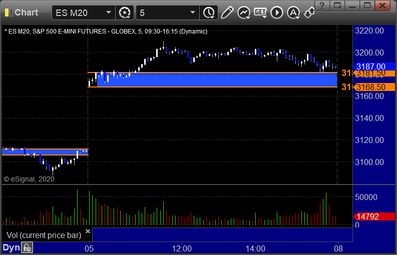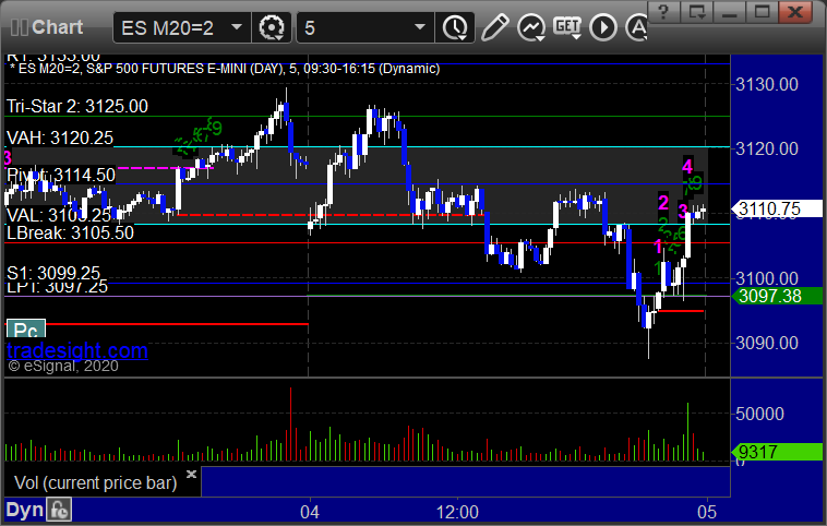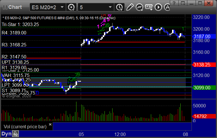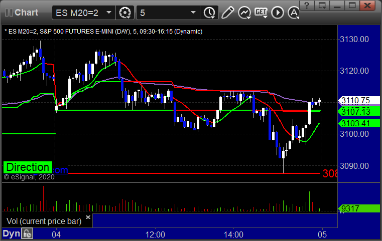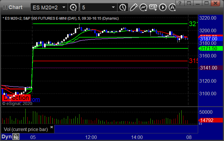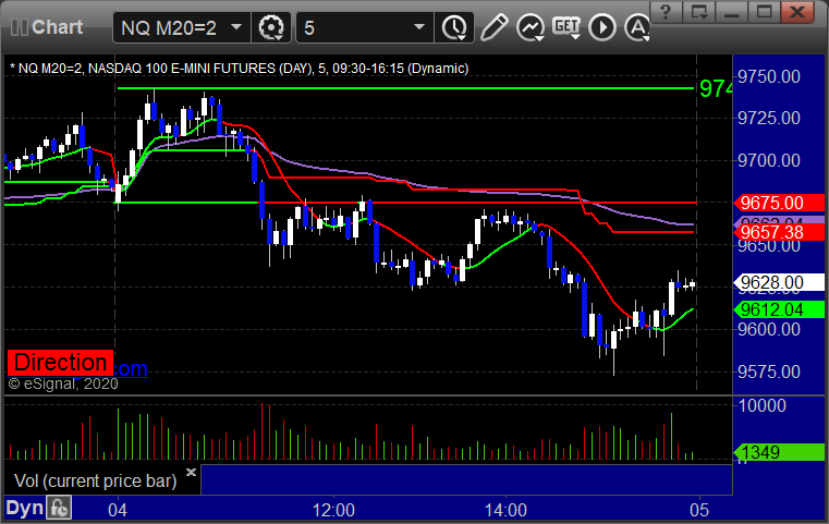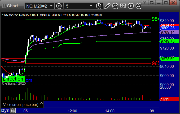 As usual, let's start by taking a look at the ES and NQ with our market directional lines, VWAP, and Comber on the 5-minute chart from today's session: