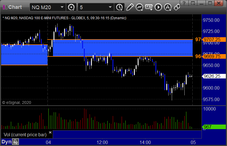 The markets gapped down, filled, never broke the high of the prior session, and then headed lower until a very late rebound on 6 billion NASDAQ shares.