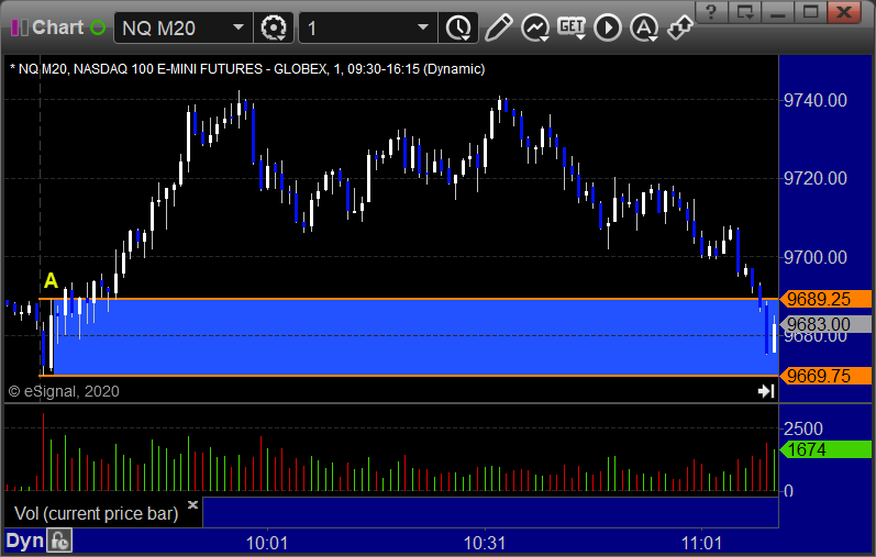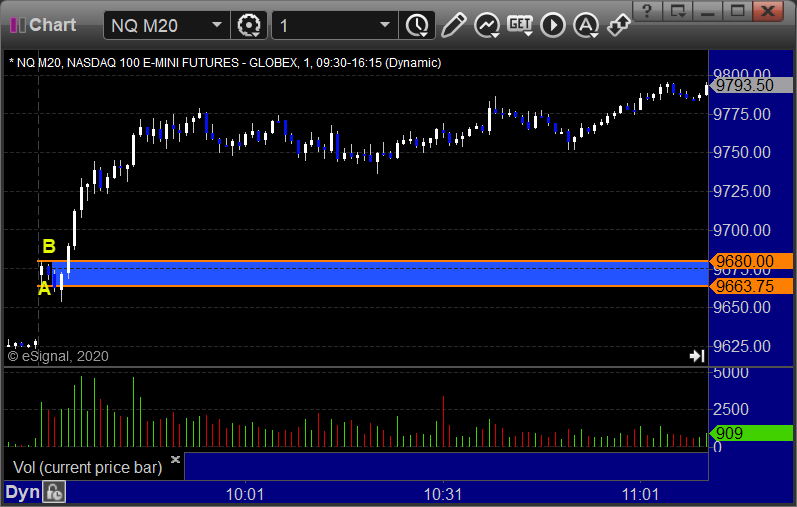 NQ Opening Range Play triggered long at A but too far out of range to take:
