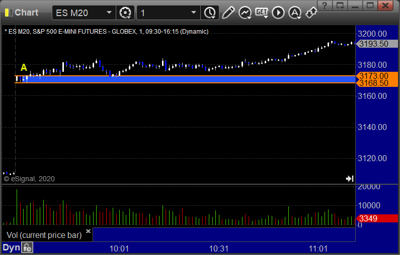 ES Opening Range Play triggered long at A and worked enough for a partial: