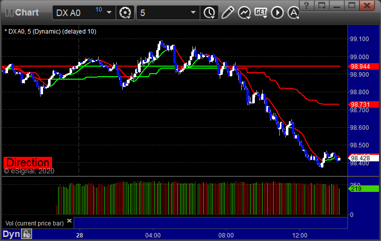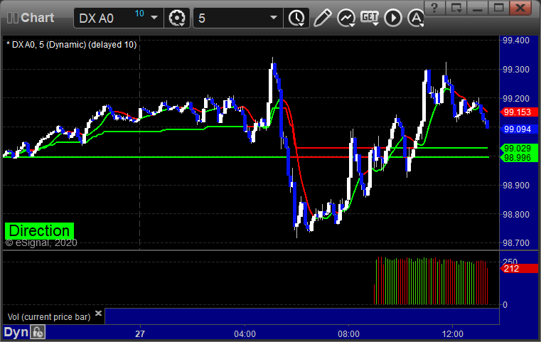 Here's a look at the US Dollar Index intraday with our market directional lines: