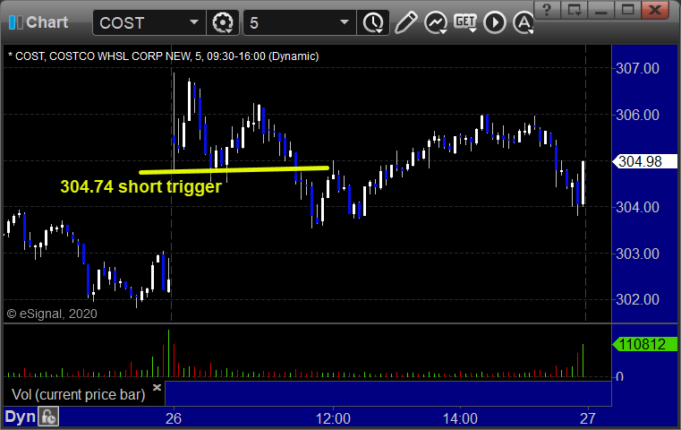 From the Messenger/Tradesight_st Twitter Feed, COST triggered short (with market support) and didn't work, worked later: