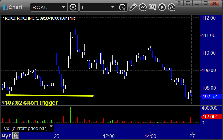 Rich's ROKU triggered short (with market support) and didn't work: