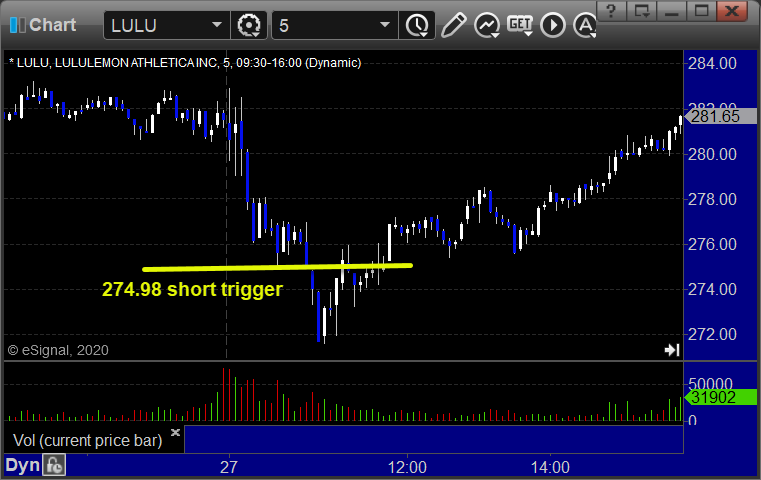 LULU triggered short (with market support) and worked enough for a partial: