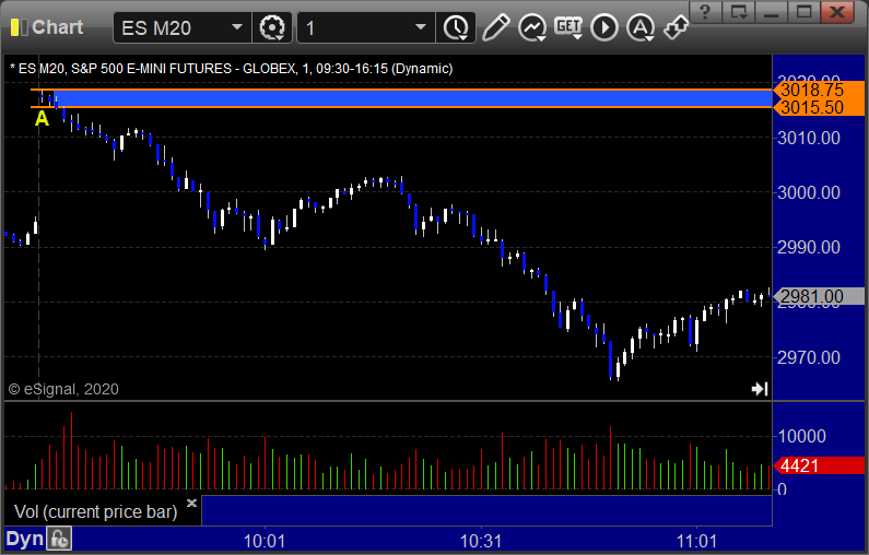 ES Opening Range Play triggered short at A and worked: