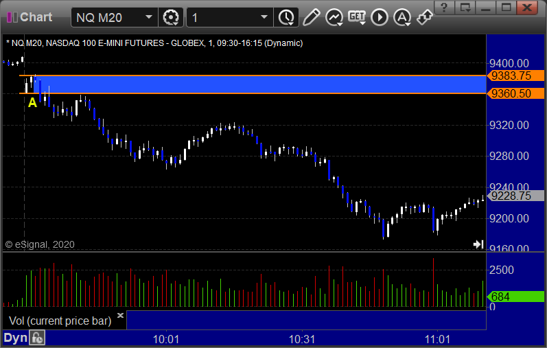 NQ Opening Range Play triggered short at A but too far out of range to take: