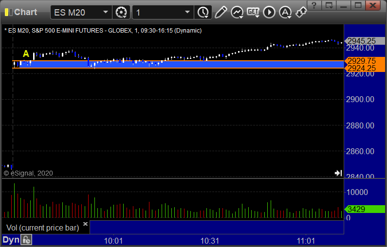 ES Opening Range Play triggered long at A and worked enough for a partial: