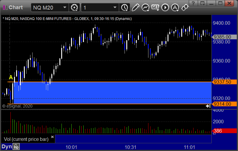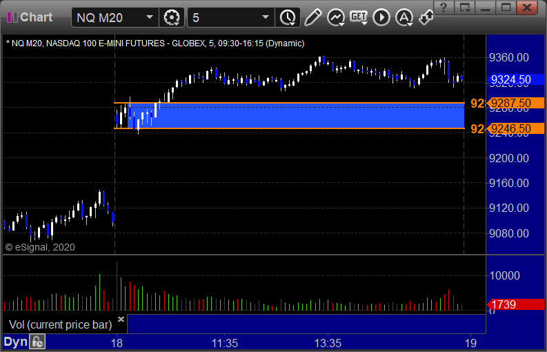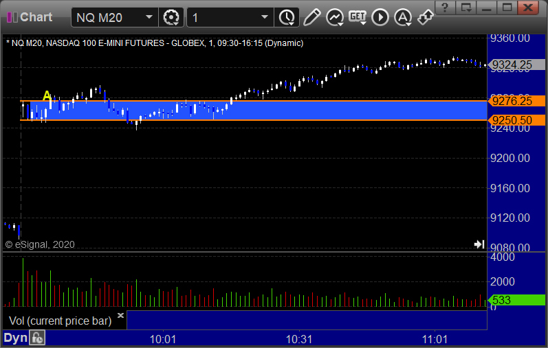 NQ Opening Range Play triggered long at A but too far over the range to take under the rules: