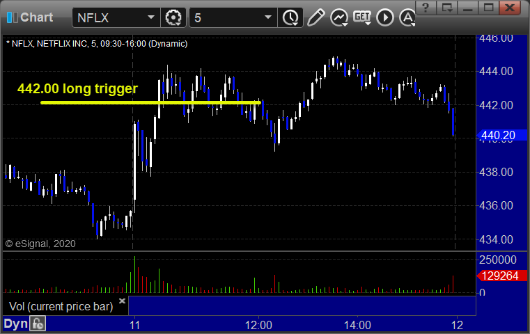 Rich's NFLX triggered long (with market support) and worked enough for a partial:
