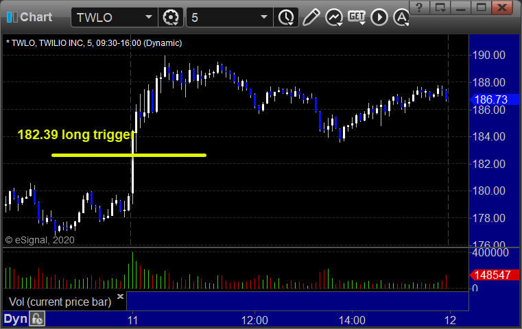 From the Messenger/Tradesight_st Twitter Feed, Rich's TWLO triggered long (without market support due to opening 5 minutes):