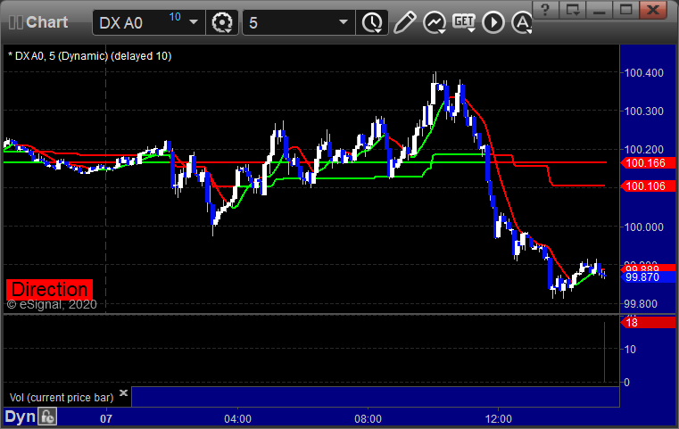 Here's a look at the US Dollar Index intraday with our market directional lines: