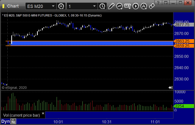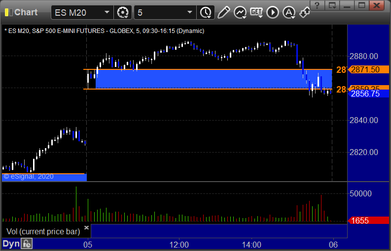 ES Opening Range Play triggered short at A and long at B, but both too far out of range to take: