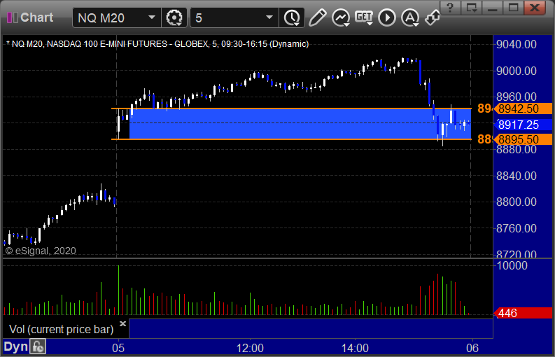 NQ Opening Range Play triggered long at A and short B but both were out of range: