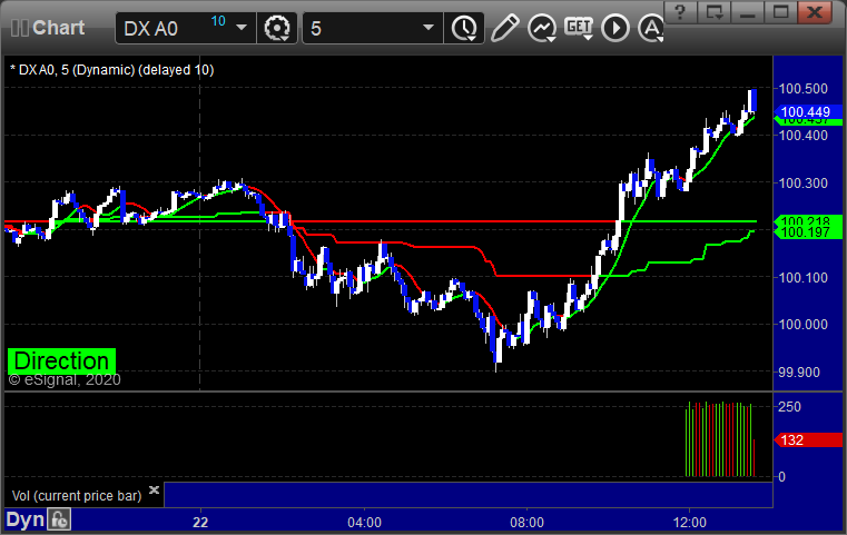 Here's a look at the US Dollar Index intraday with our market directional lines: