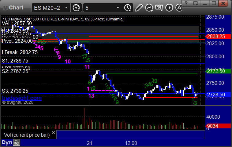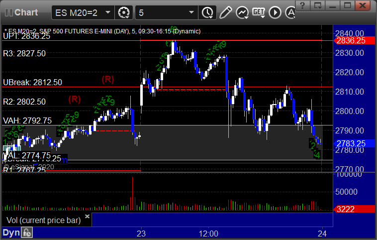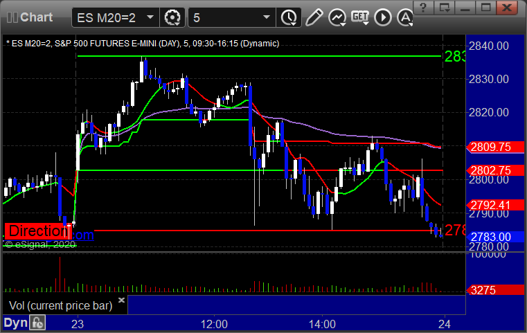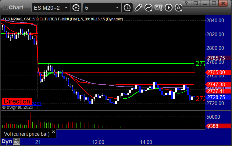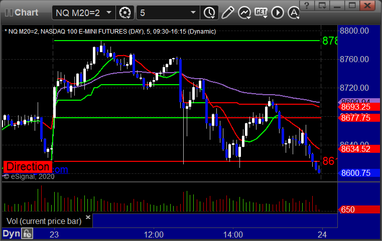 As usual, let's start by taking a look at the ES and NQ with our market directional lines, VWAP, and Comber on the 5-minute chart from today's session: