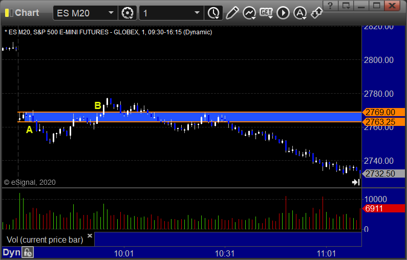 ES Opening Range Play triggered short at A and long at B, both were too far out of range to take under the rules: