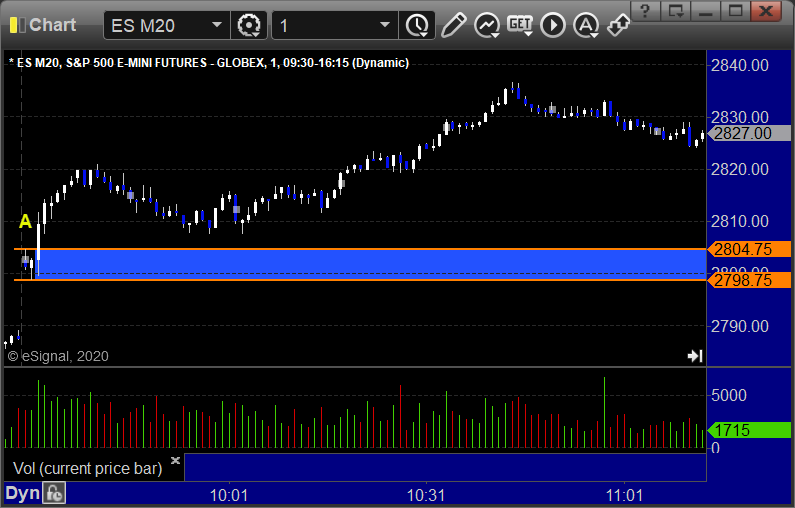 ES Opening Range Play triggered short at A but too far out of range to take under the rules: