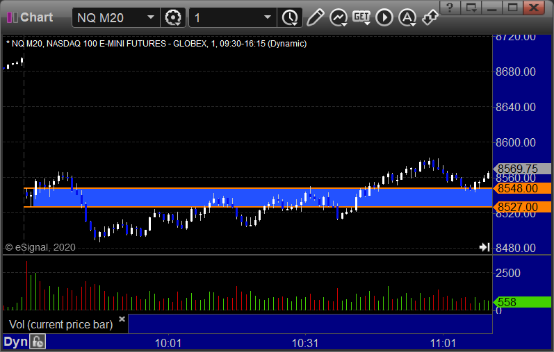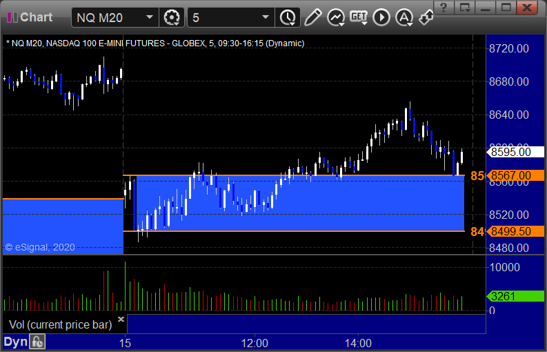 NQ Opening Range Play triggered long and short but both were too far out of range to take: