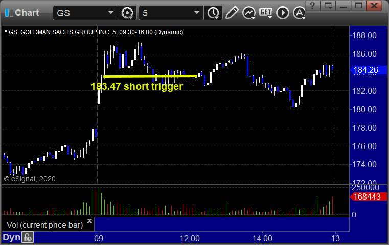 From the Messenger/Tradesight_st Twitter Feed, GS triggered short (without market support) and worked: