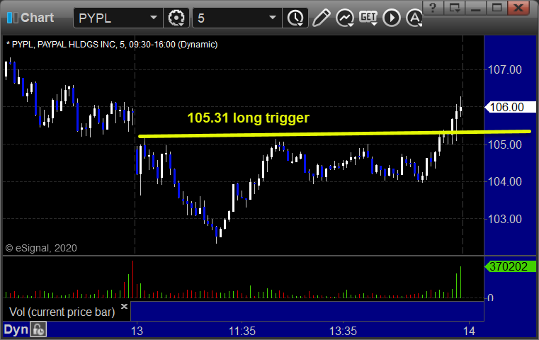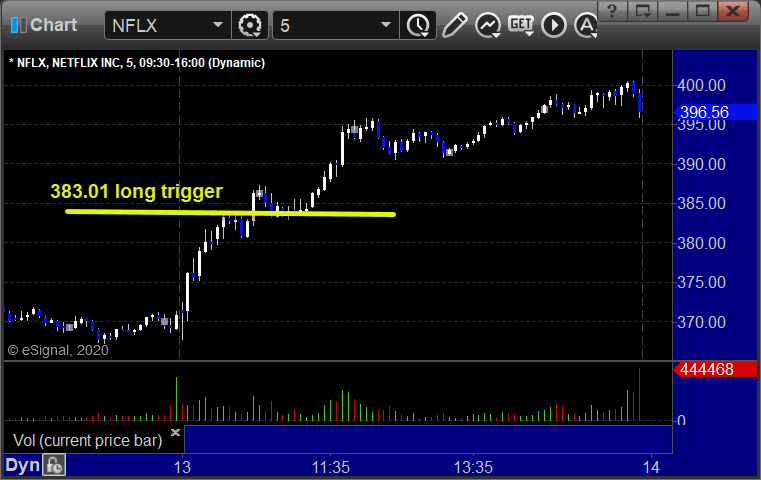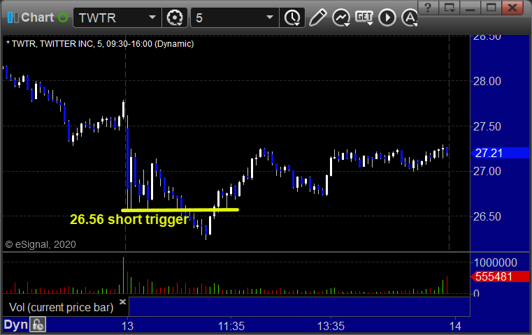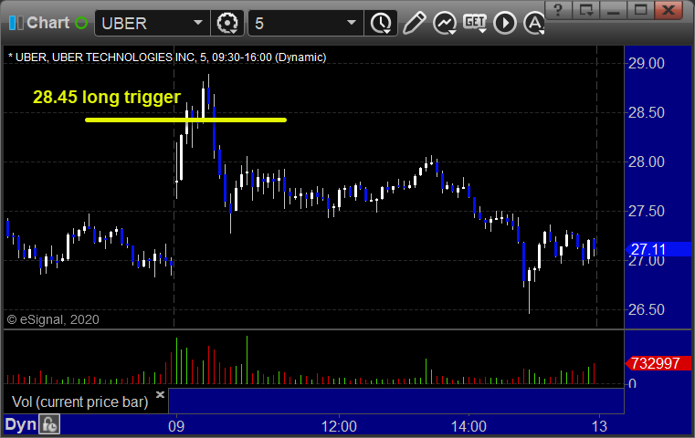 With each stock's recap, we will include a (with market support) or (without market support) tag, designating whether the trade triggered with or without market directional support at the time. Anything in the first five minutes will be considered WITHOUT market support because market direction cannot be determined that early. ETF calls do not require market support, and are thus either winners or losers.
