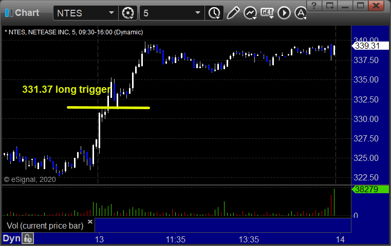 From the Messenger/Tradesight_st Twitter Feed, Rich's NTES triggered long (with market support) and worked: