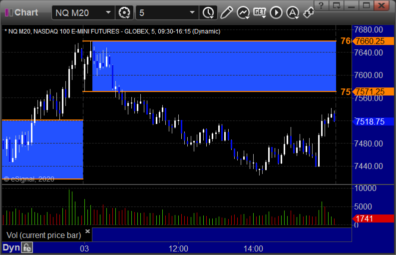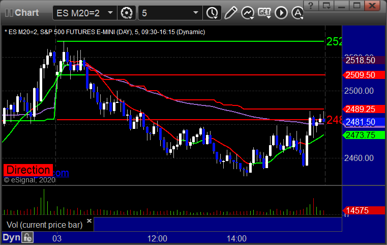 As usual, let's start by taking a look at the ES and NQ with our market directional lines, VWAP, and Comber on the 5-minute chart from today's session: