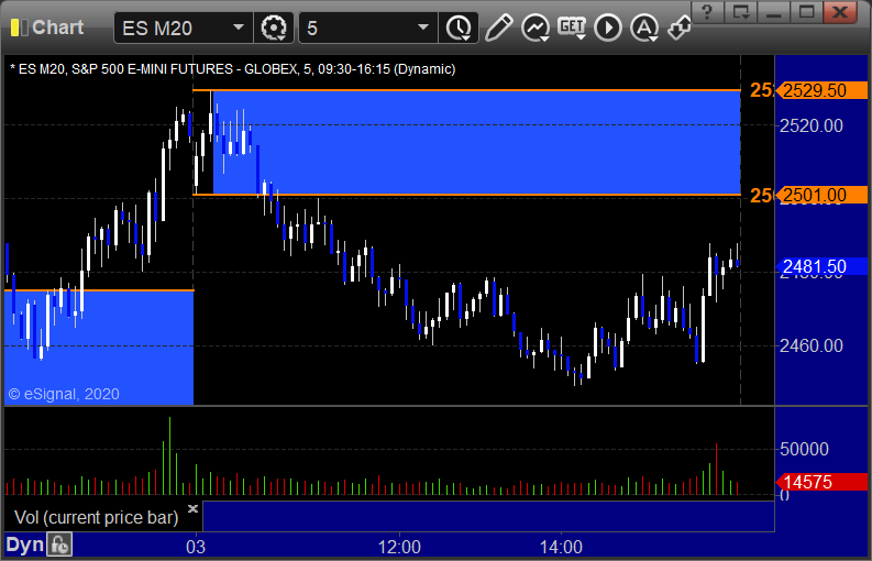 ES Opening Range Play triggered long at A and would have worked, but just a little too far out of range under the rules to take, triggered short at B but definitely too far out of range: