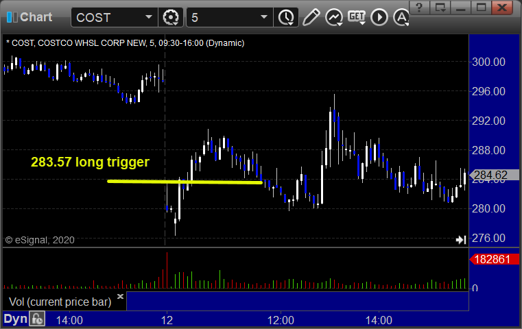 From the Messenger/Tradesight_st Twitter Feed, Rich's COST triggered long (with market support) and worked: